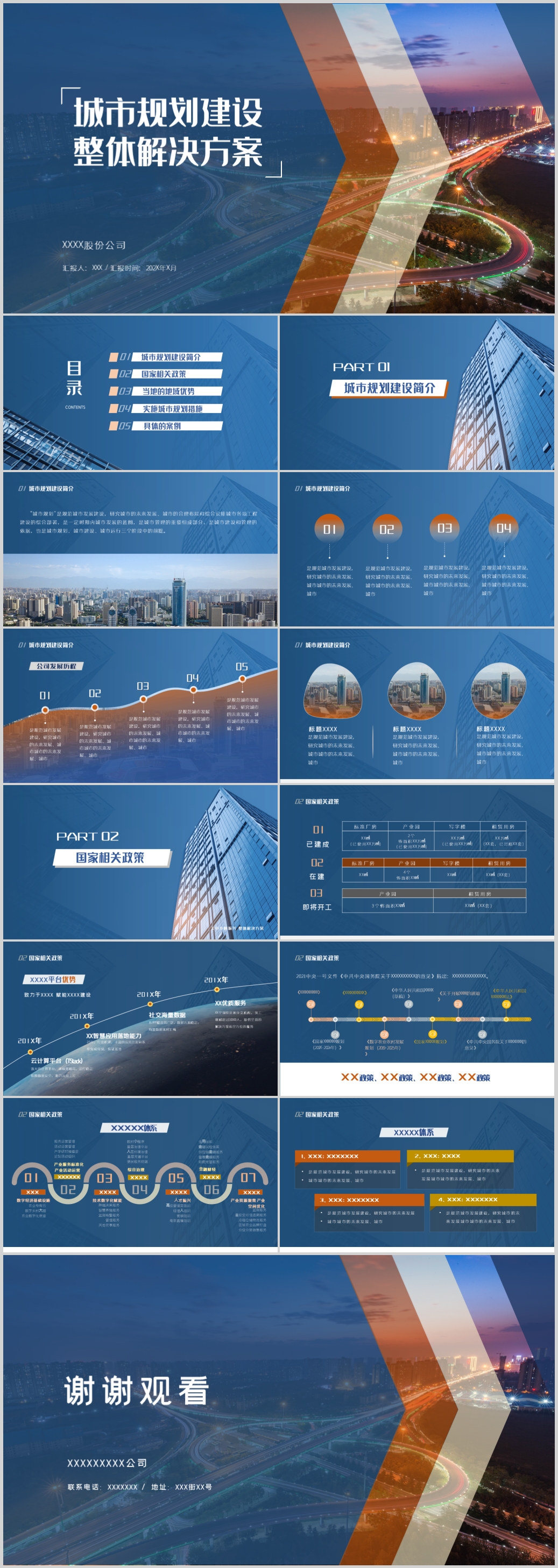 蓝色建设创建文明城市规划招商PPT模板
