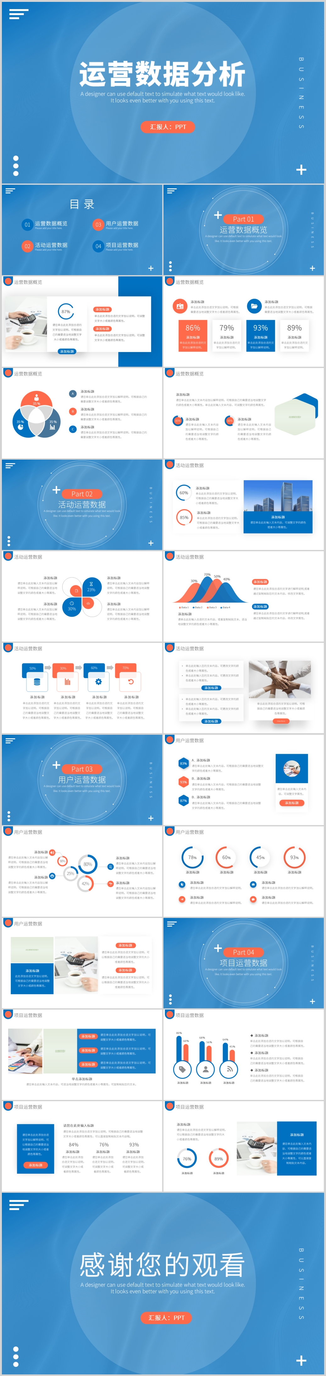 蓝色简约纯色运营数据分析工作总结汇报PPT模板