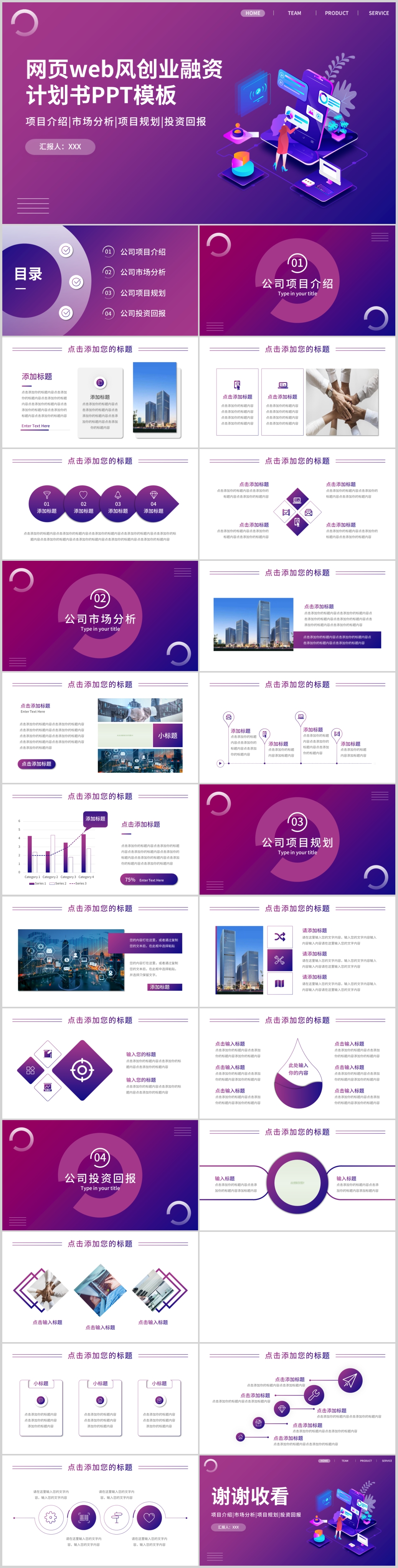 简约2.5D互联网web网页商务通用商业融资计划书ppt模板