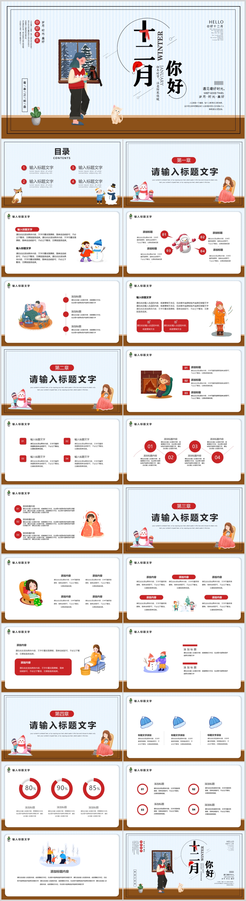 简约卡通您好十二月通用PPT模板