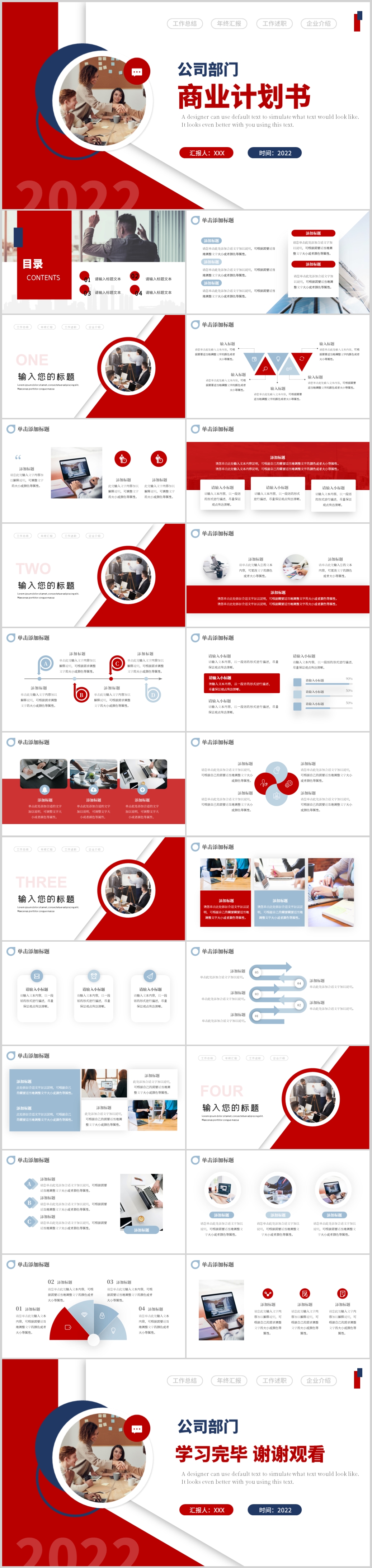 蓝红拼色2022公司商务融资商业计划书PPT模板