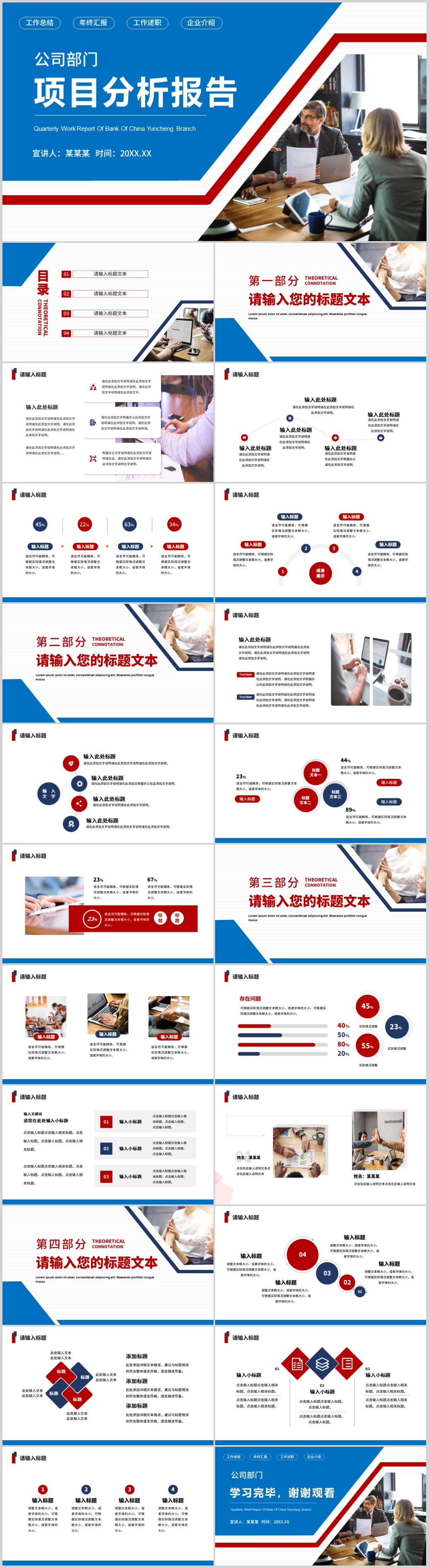 蓝色大气工作项目分析报告总结PPT模板