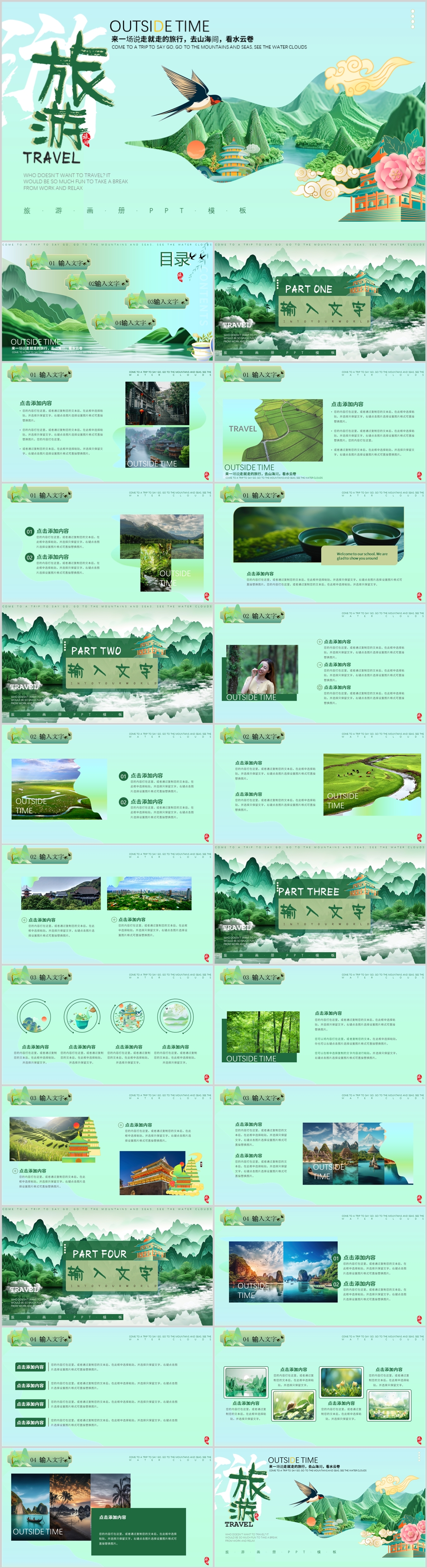 绿色清新乡村旅游介绍设乡村风景相册PPT模版