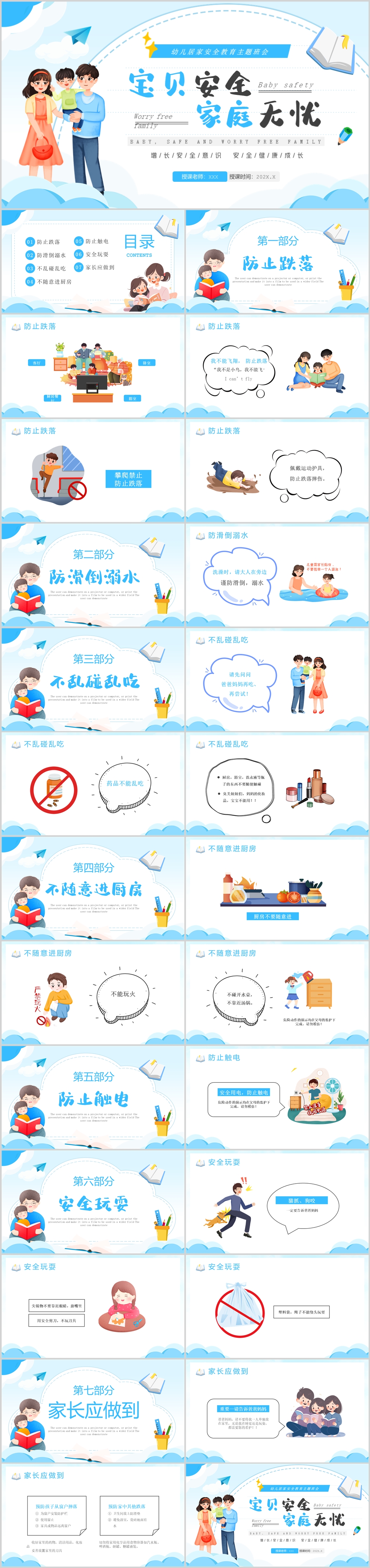 卡通风幼儿宝宝增长安全意识防范教育主题班会ppt模板