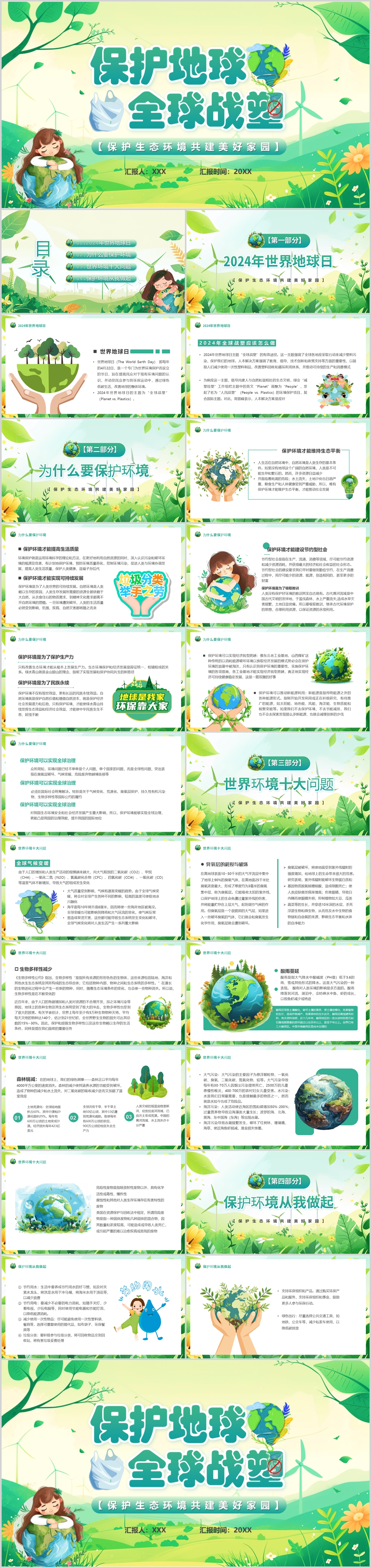 绿色保护地球一小时生态环境动态ppt模板