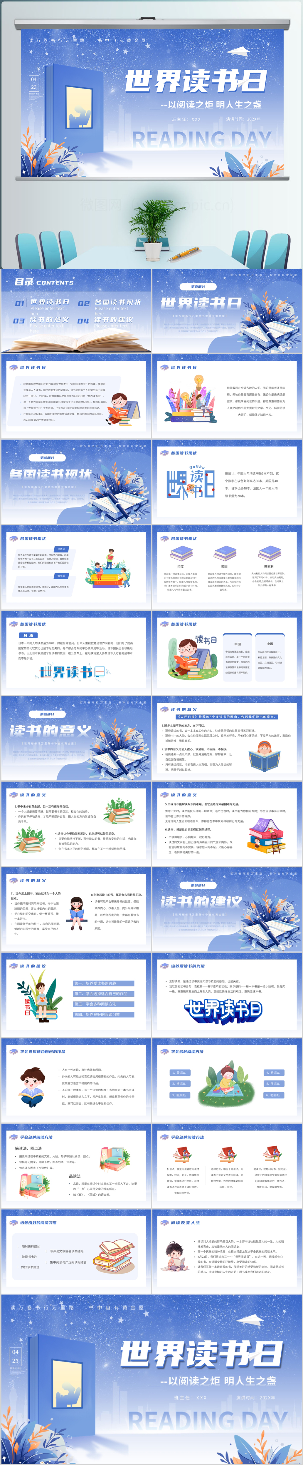 2024蓝色世界读书日读书分享阅读课件PPT模板