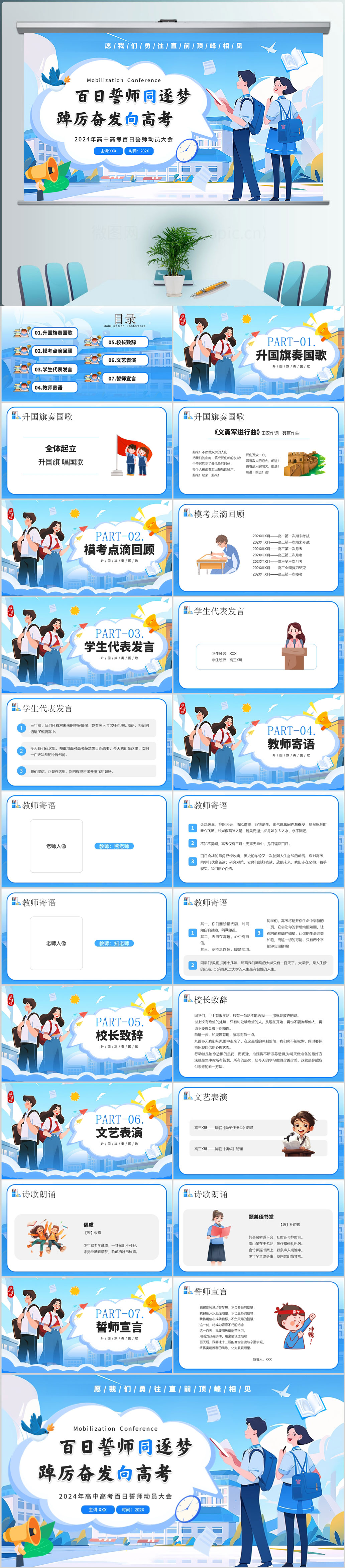 2024年高中高考百日倒计时誓师动员大会ppt模板