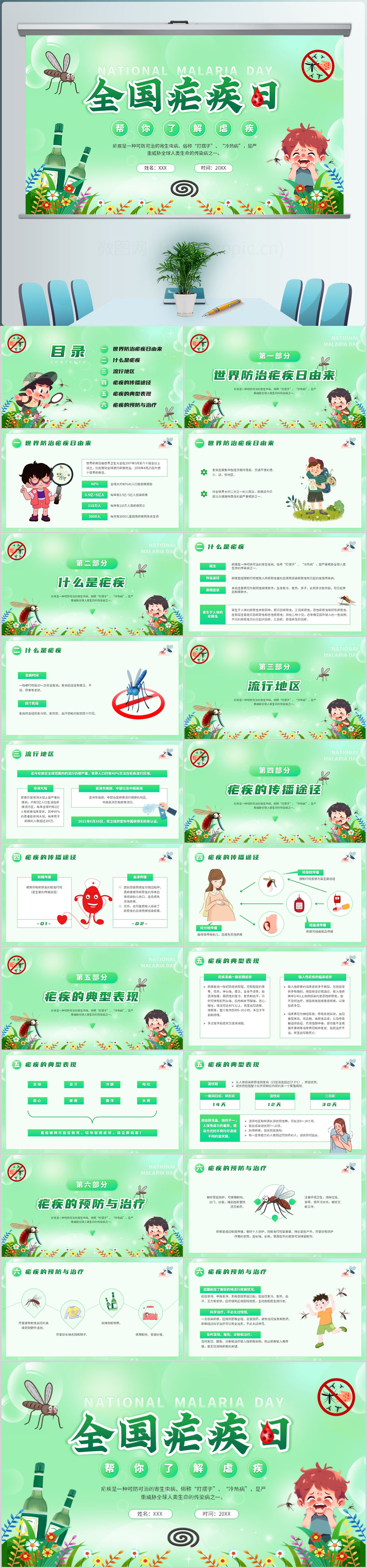 绿色全国疟疾日防治疟疾介绍ppt模板