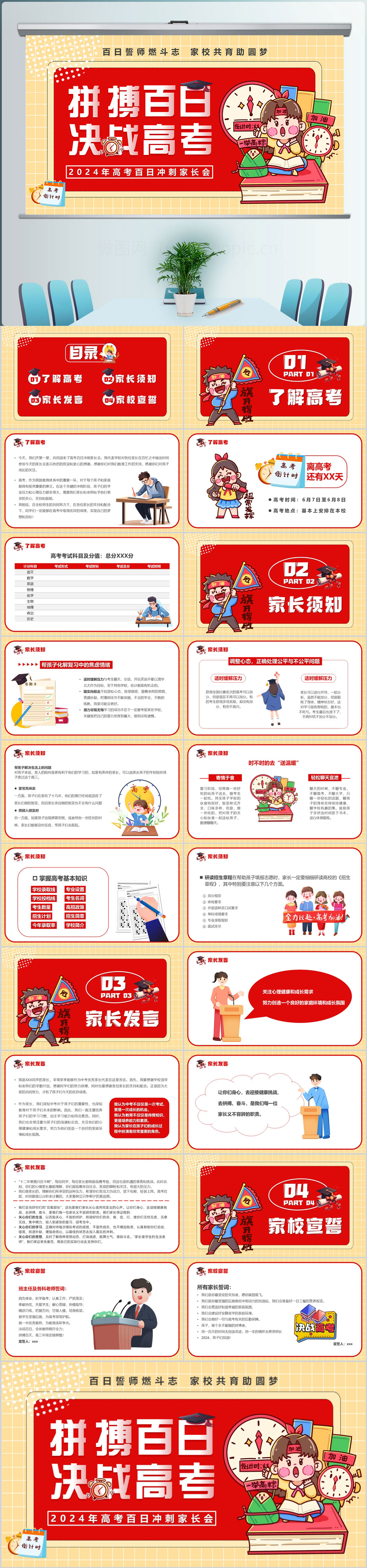 2024年拼搏百日决战高考百日冲刺家长会主题介绍ppt模板