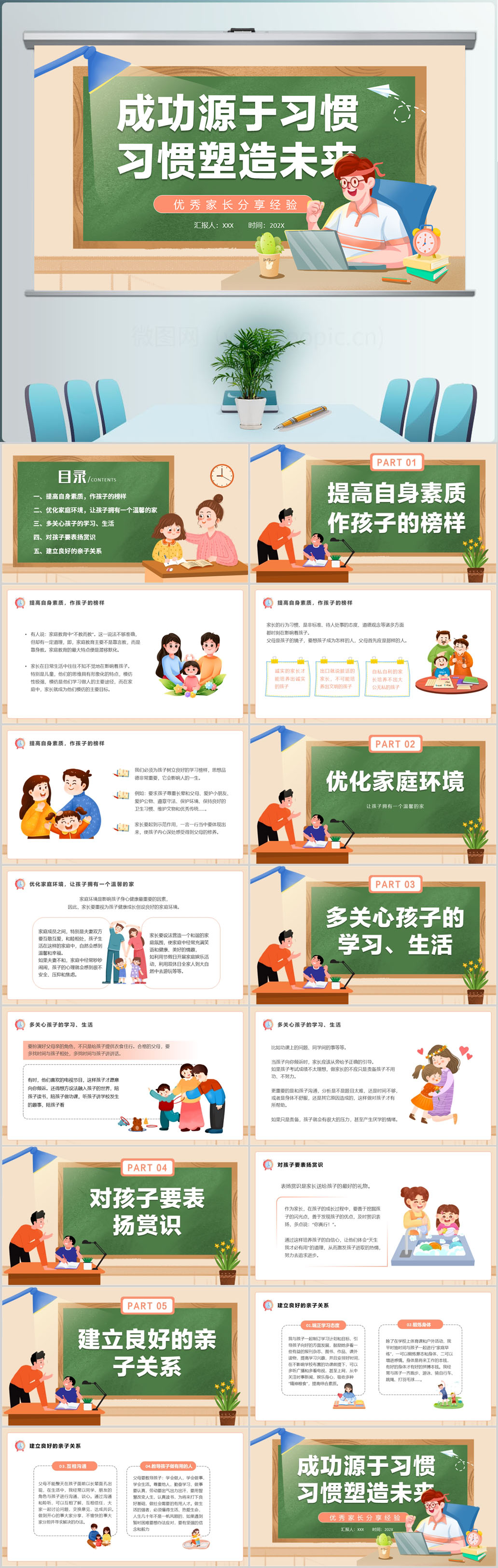 卡通黑板风卡通成功源于习惯优秀家长会分享经验ppt模板