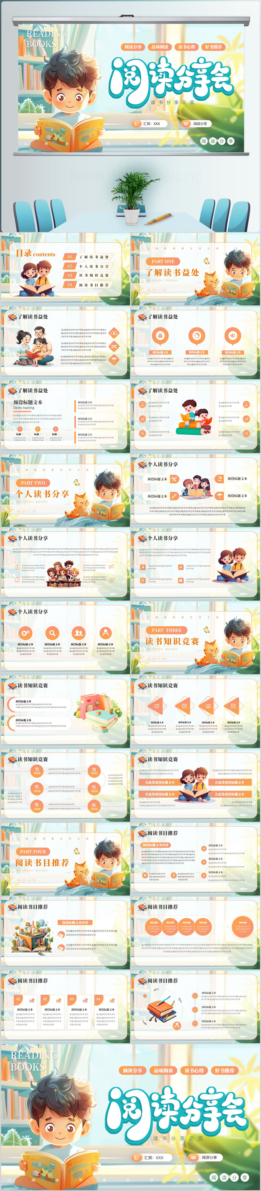 卡通教育课件读书分享阅读公开课教师说课ppt模板