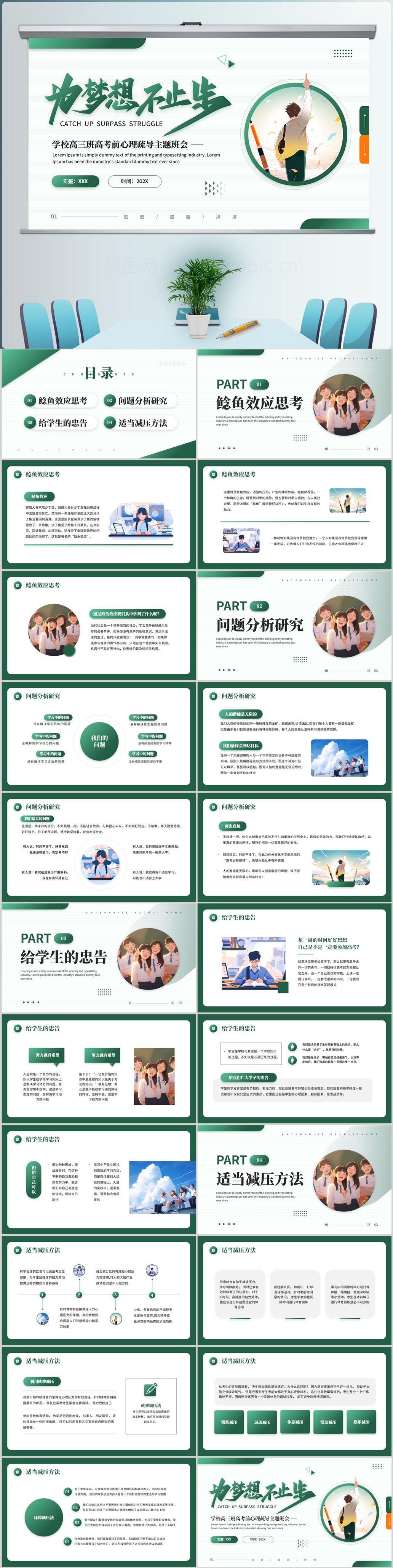 绿色高三班高考前心理疏导主题班会ppt模板