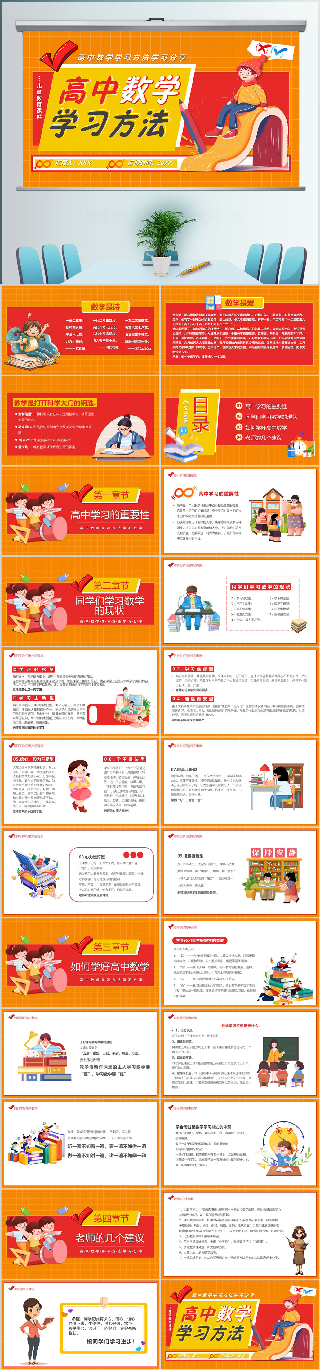 卡通高中数学学习方法教育课件ppt模板
