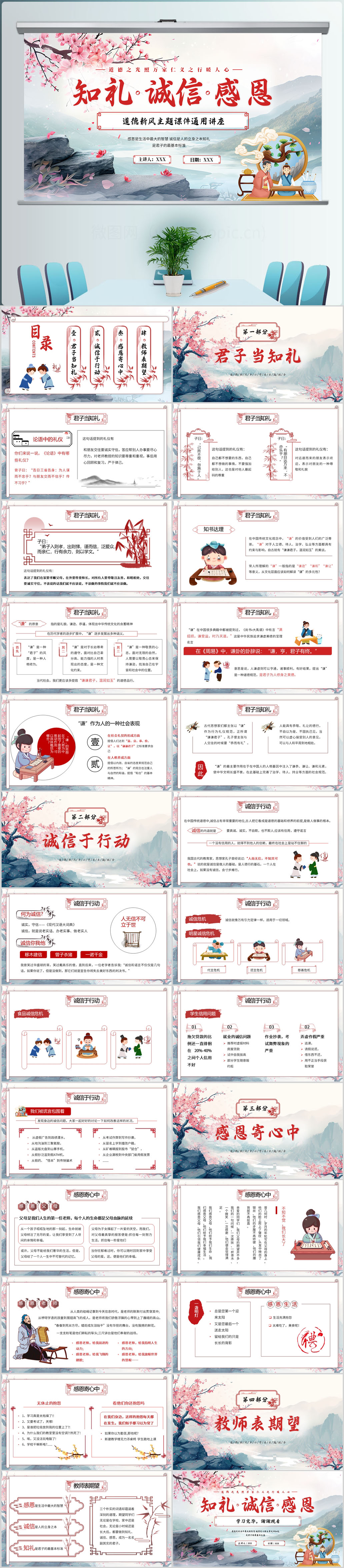 中国风水墨知礼诚信感恩道德新风主题教育课件ppt模板