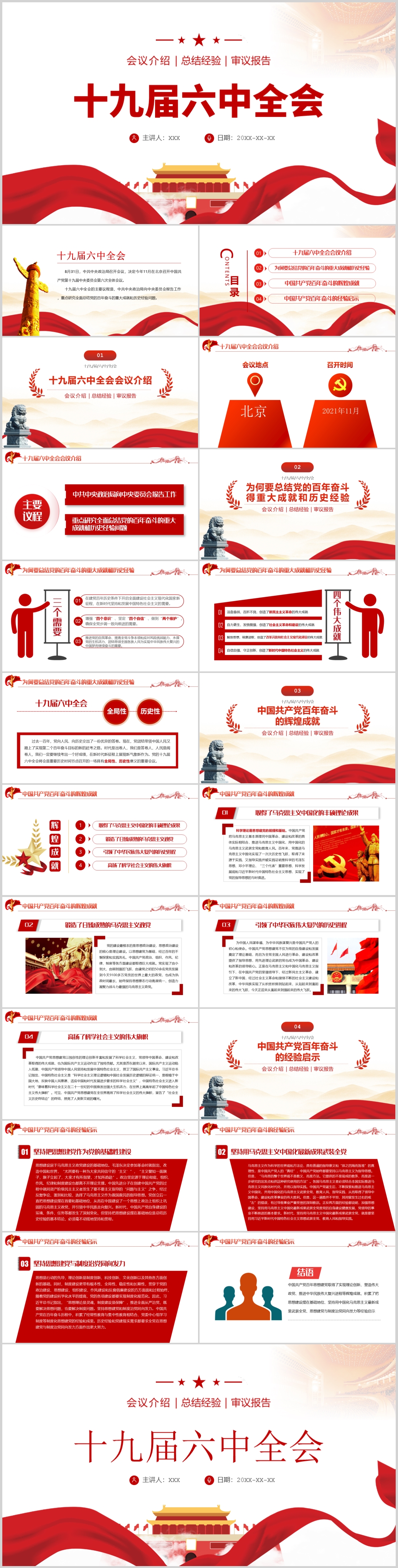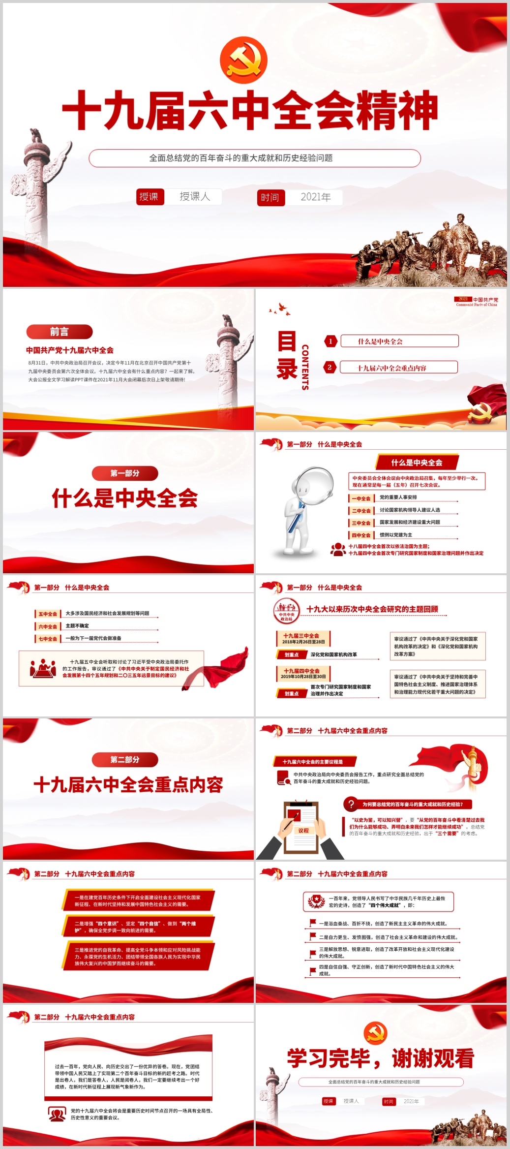 学习贯彻十九届六中全会精神内容解读PPT模板(内含WORD演讲稿)