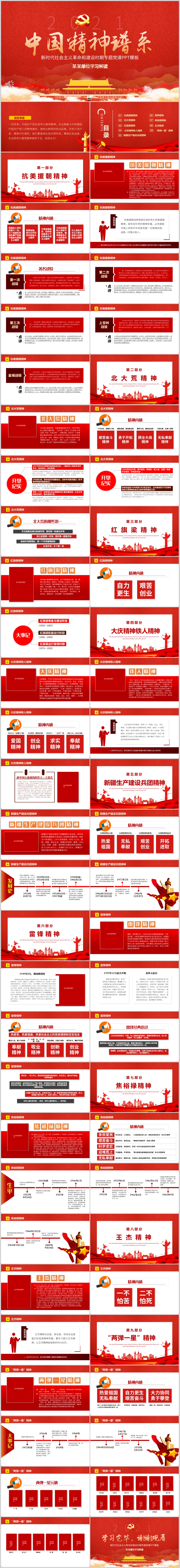红色中国精神谱系建设时期专题PPT模板(内含WORD演讲稿)