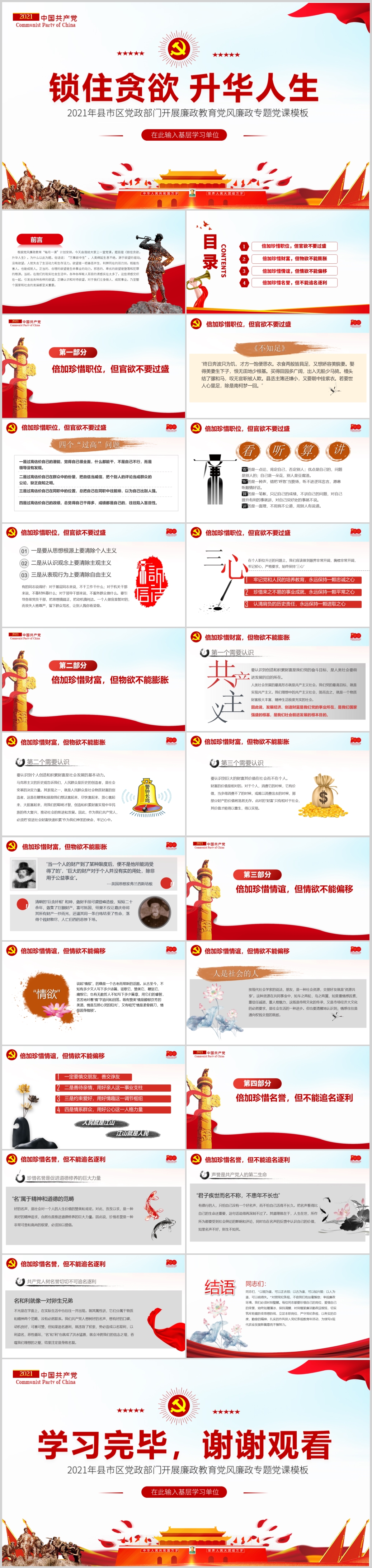 锁住贪欲升华人生党风廉政教育专题党课PPT模板(内含WORD演讲稿)