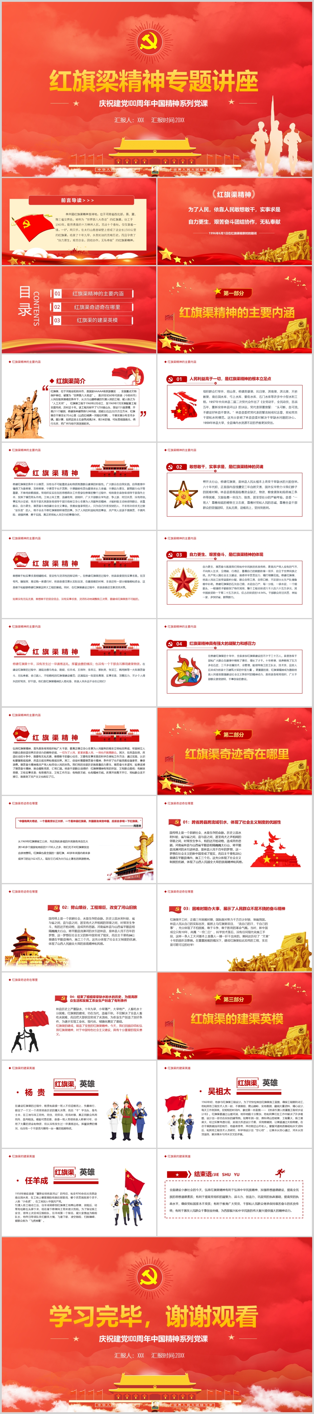 红旗梁简介红旗梁精神专题党课PPT模板(内含WORD演讲稿)