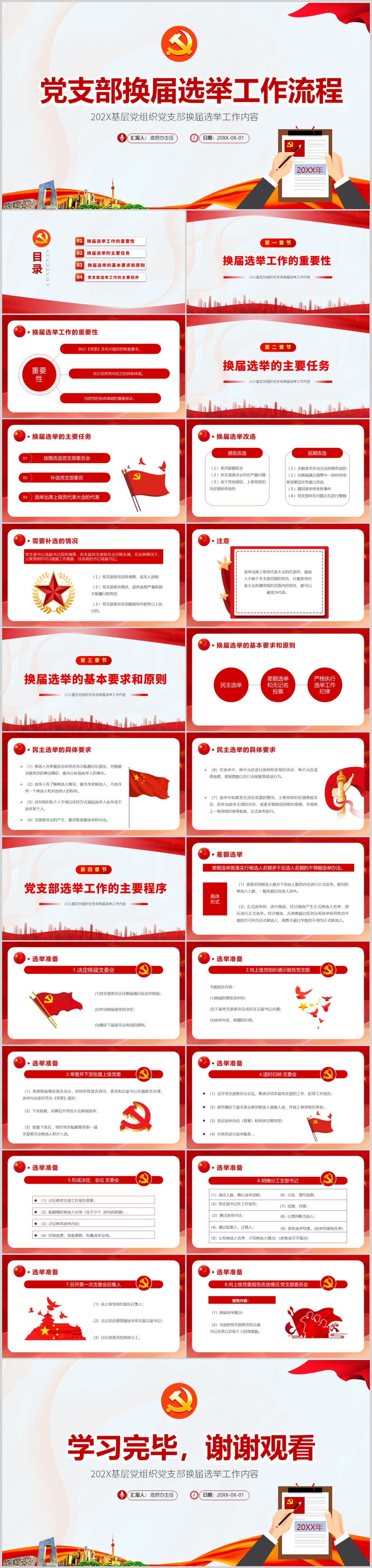 202X基层党组织党支部换届选举工作内容PPT模板