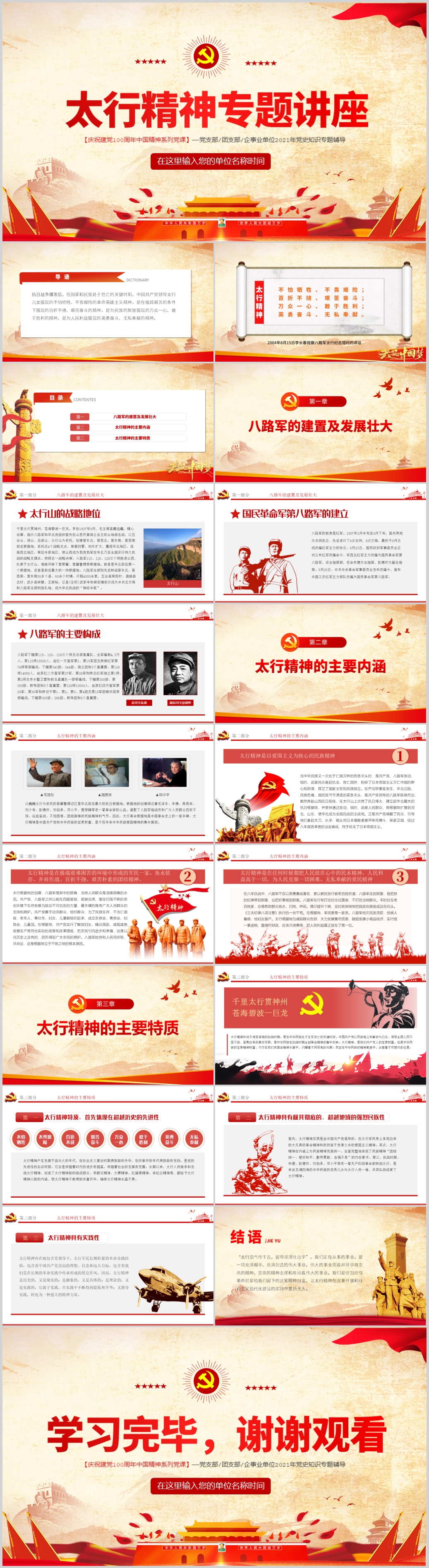学习太行精神教育专题党课PPT模板(内含WORD演讲稿)