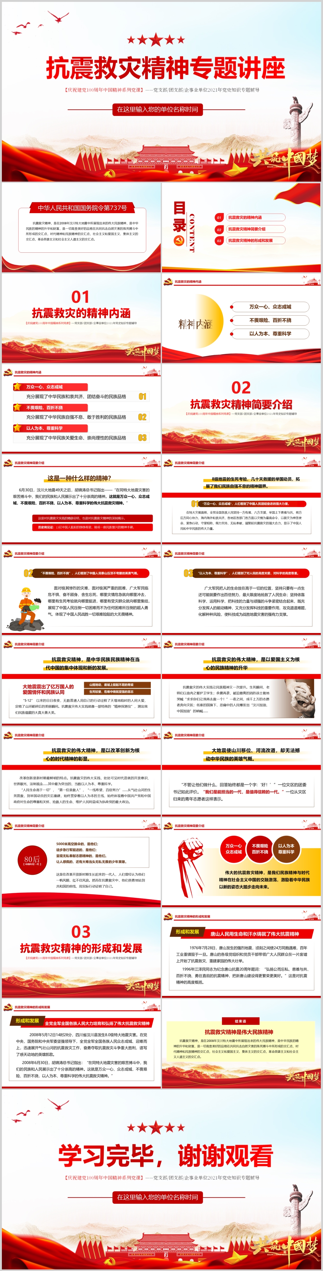 弘扬抗震救灾精神专题讲座课件PPT模板
