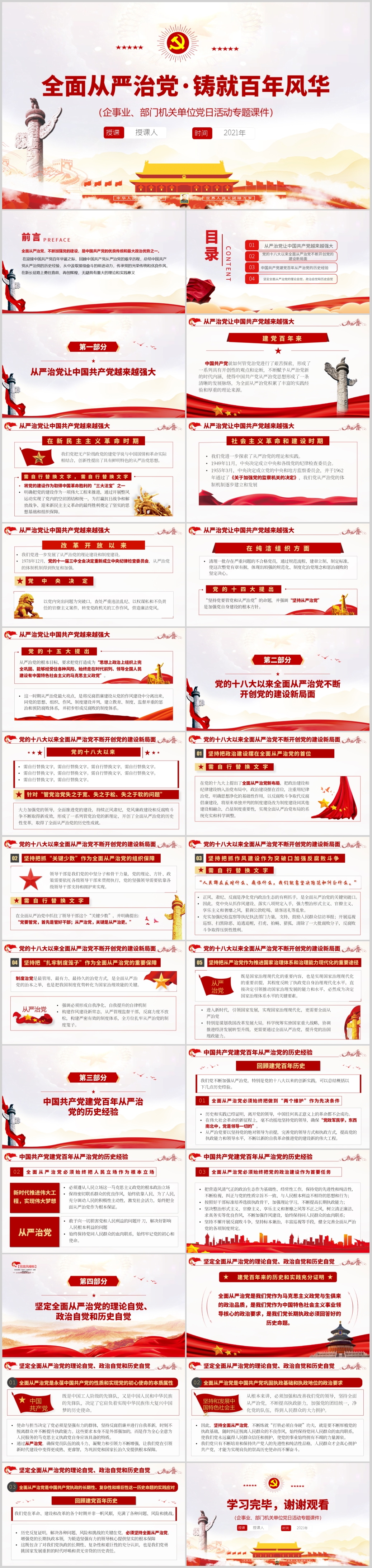 全面从严治党铸就百年风华专题课件PPT模板(内含WORD演讲稿)