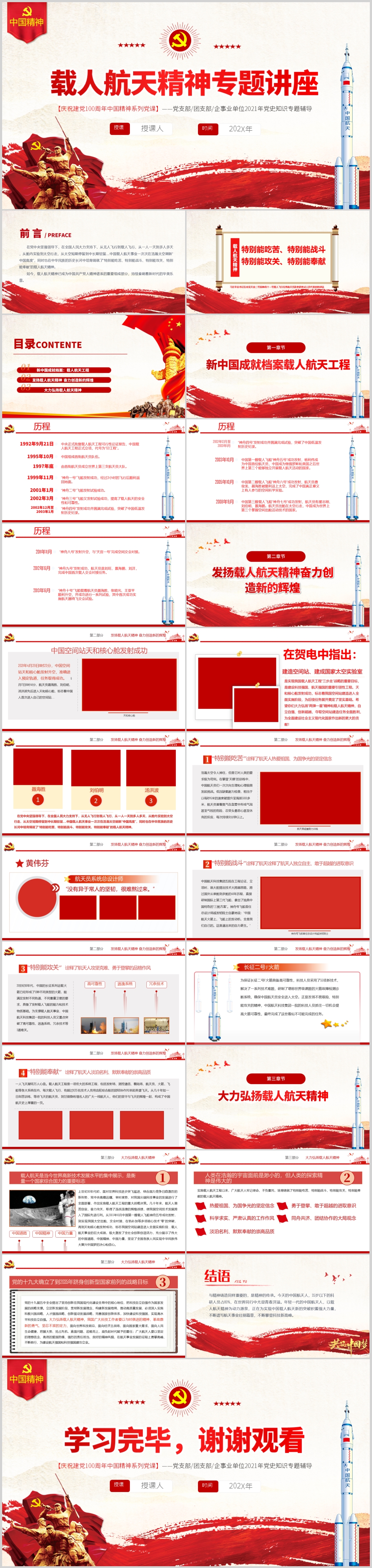 弘扬载人航天精神专题团课支部学习教育PPT模板(内含WORD演讲稿)