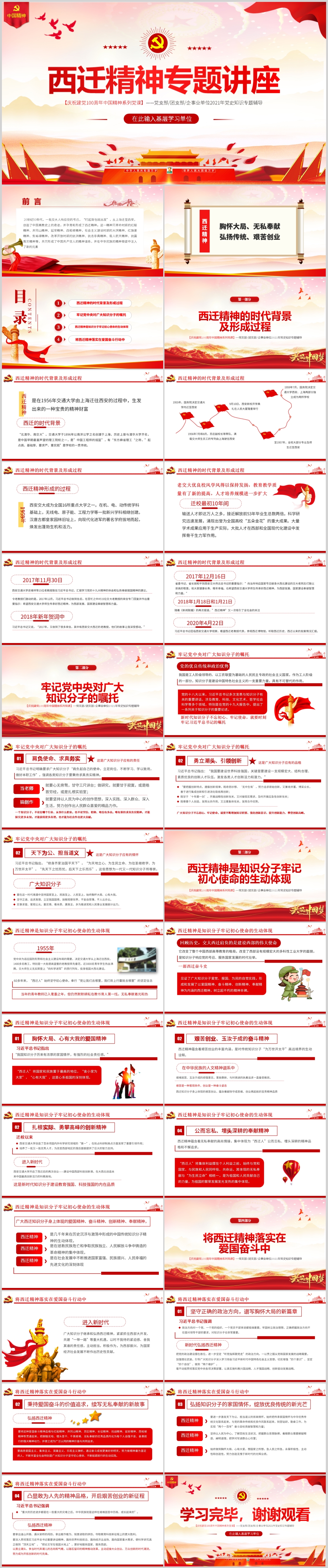 学习爱国奋斗大力弘扬西迁精神专题PPT模板(内含WORD演讲稿)