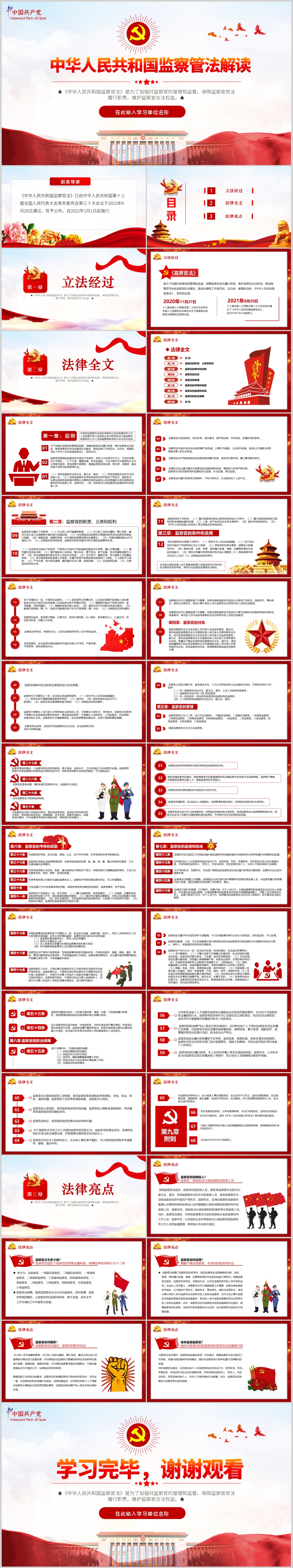 学习中华人民共和国监察官法解读党课PPT模板(内含WORD演讲稿)