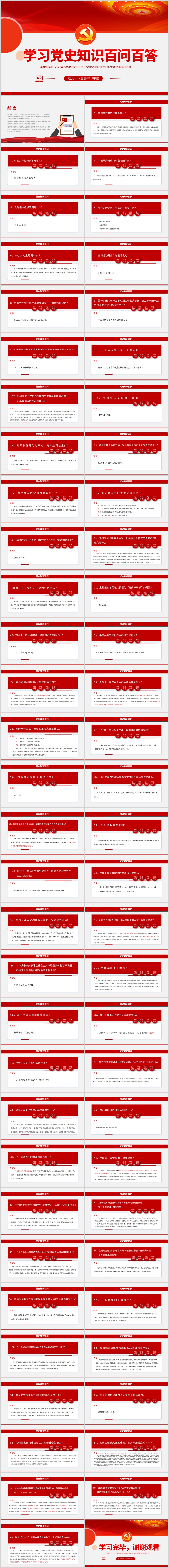 2021党史百问百答知识竞赛活动主题课件PPT模板