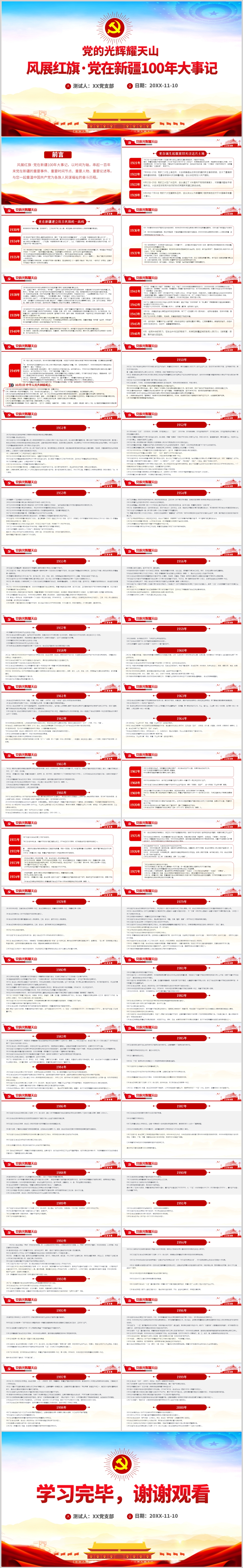 学习辉煌百年党史教育党在新疆100年大事记党课PPT模板