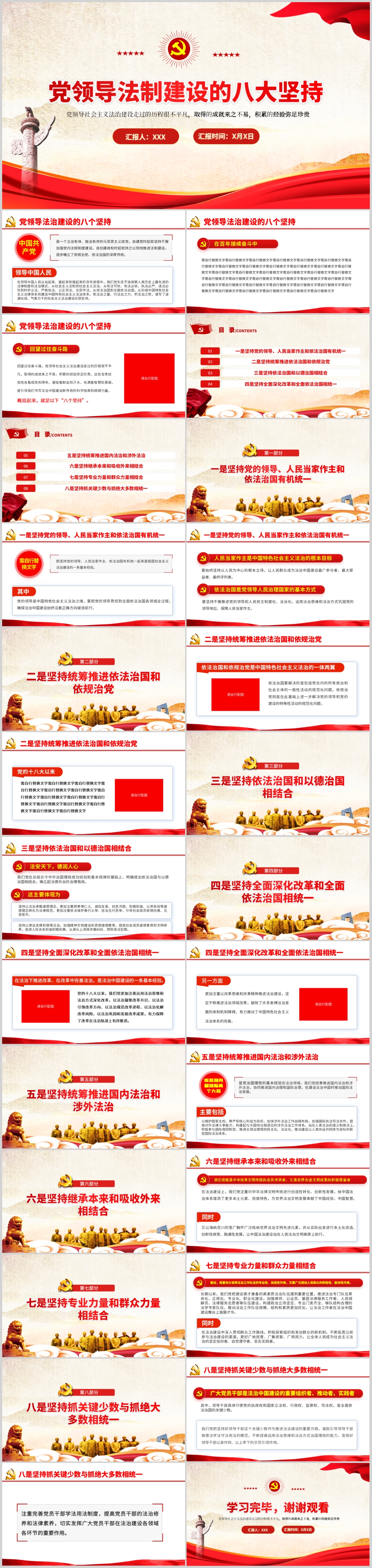 学习党史教育党领导法制建设的八大坚持原则党课PPT模板