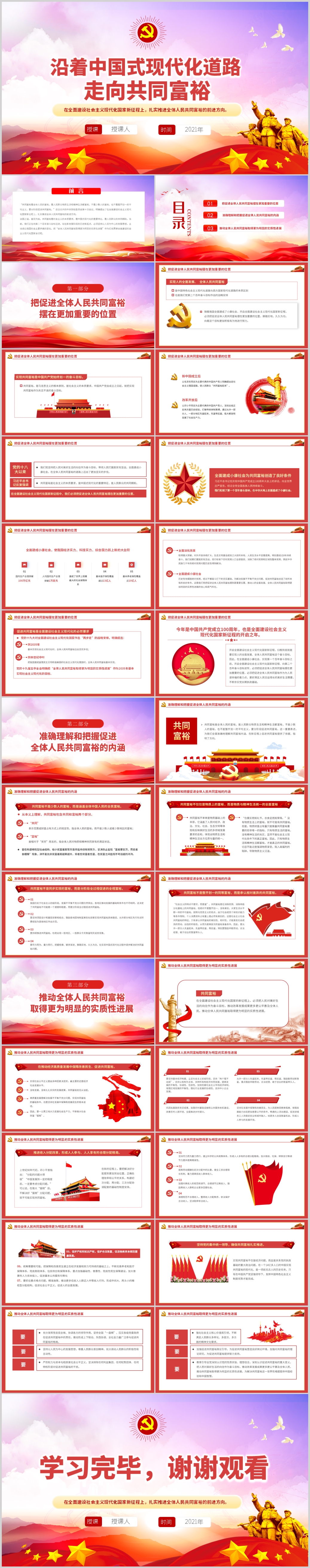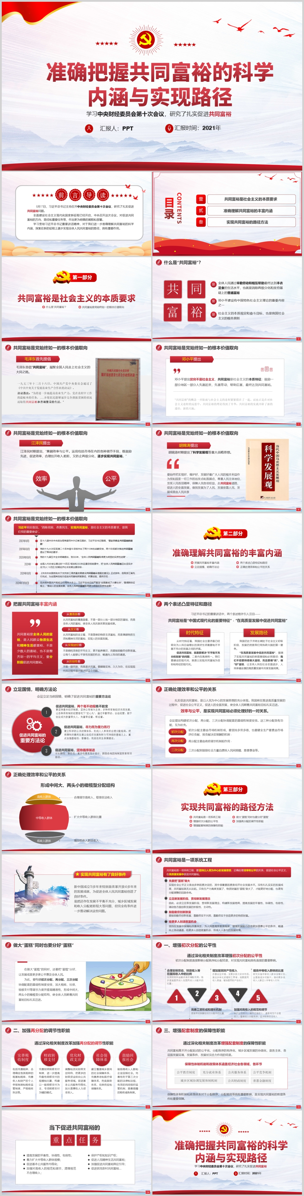 学习扎实推进全体人民共同富裕的前进方向党课PPT模板(内含WORD演讲稿)