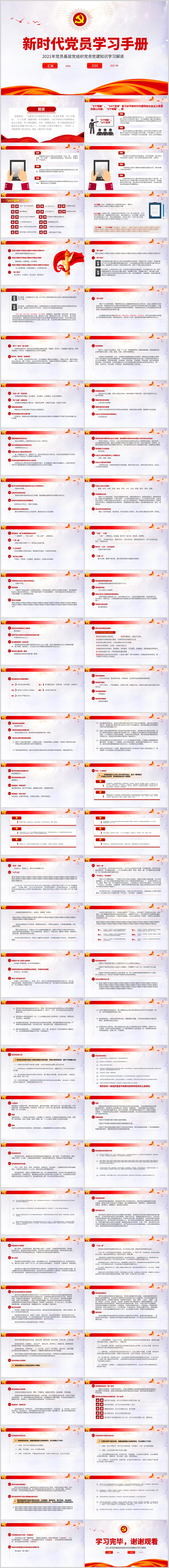 2021年基层党组织党务知识党员学习手册解读PPT模板(内含WORD演讲稿)