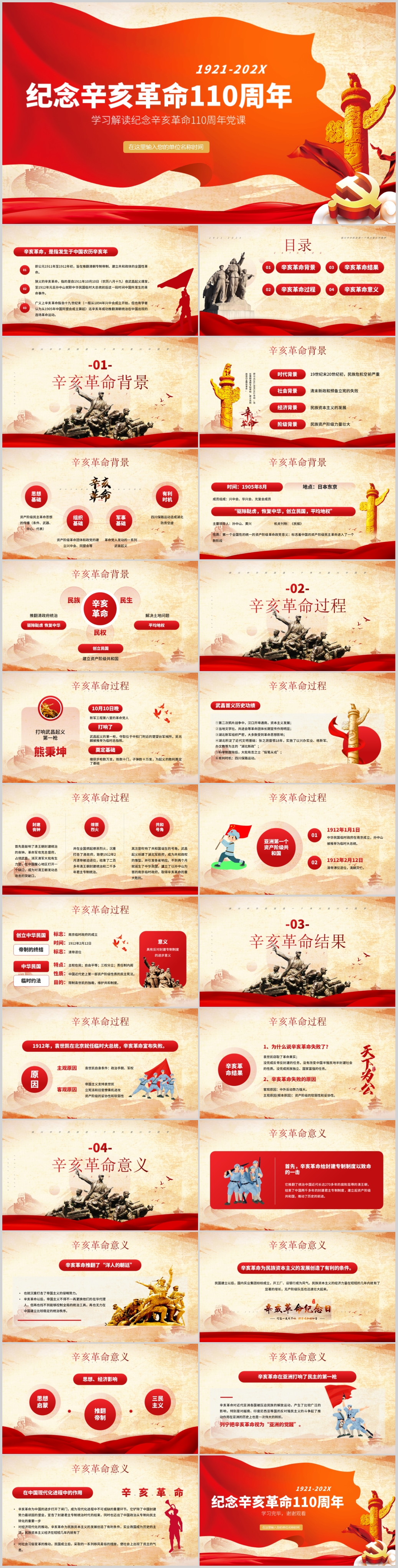 学习纪念辛亥革命110周年重要讲话精神解读PPT模板(内含WORD演讲稿)