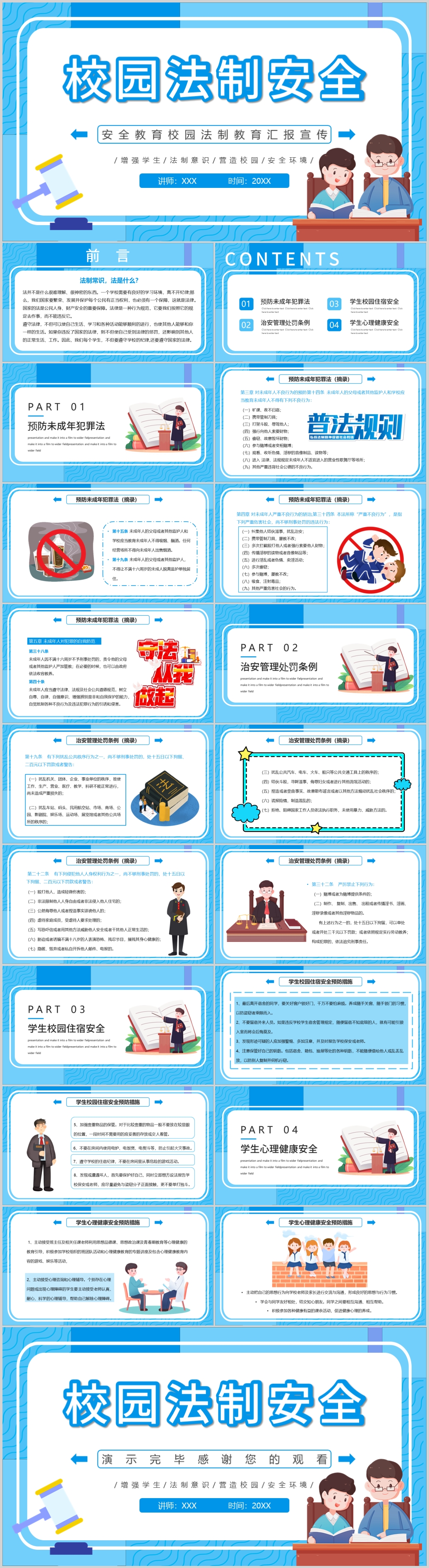 幼儿园中小学校园法制安全教育主题课件PPT模板