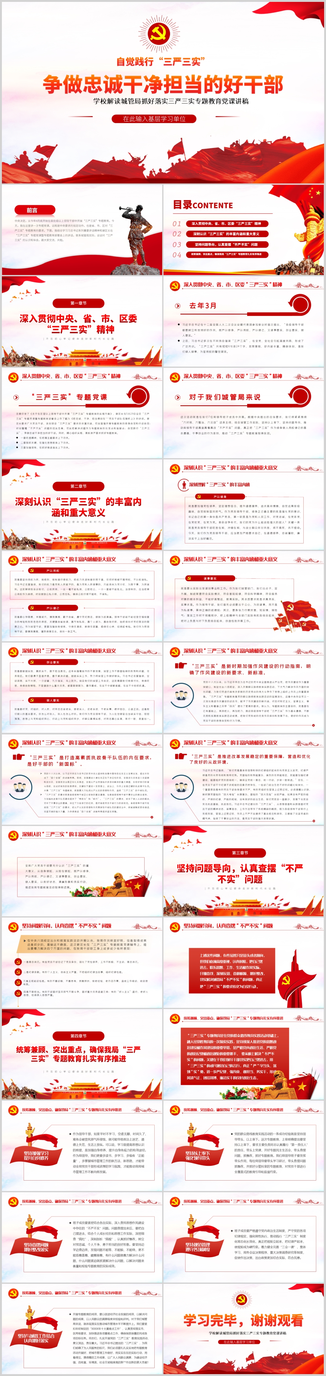 红色大好落实三严三实争做忠诚干净担当的好干部专题教育党课PPT模板(内含