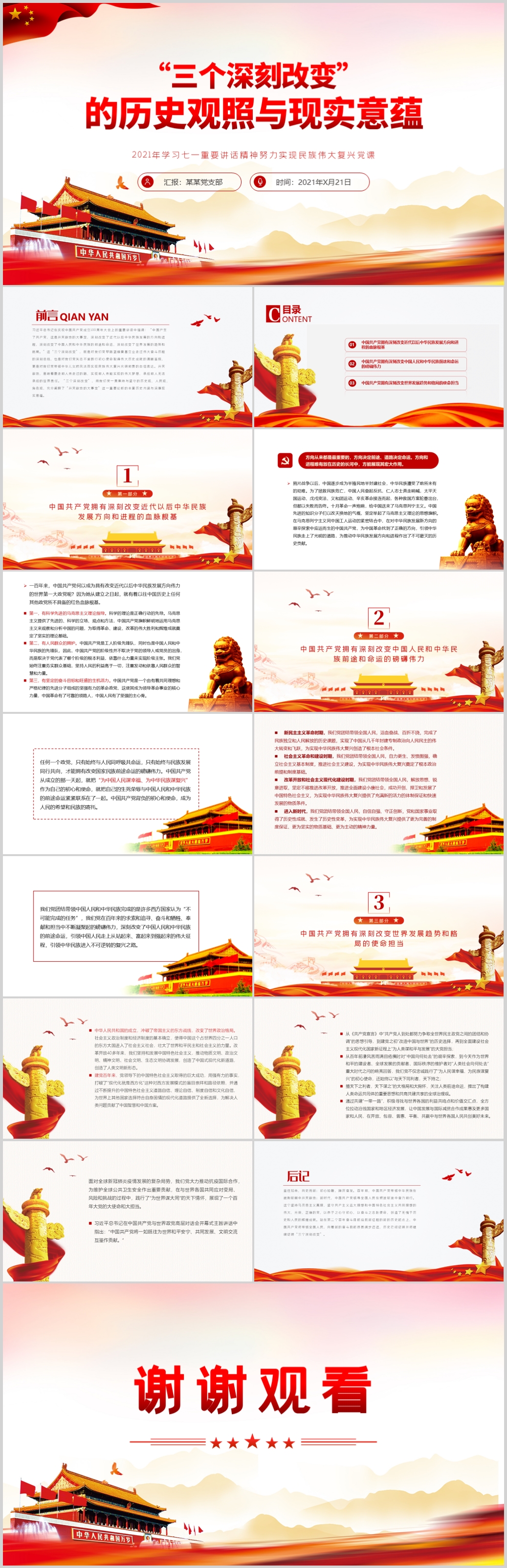 学习“三个深刻改变” 的历史观照与现实意蕴党史ppt模板(内含WORD演讲稿)