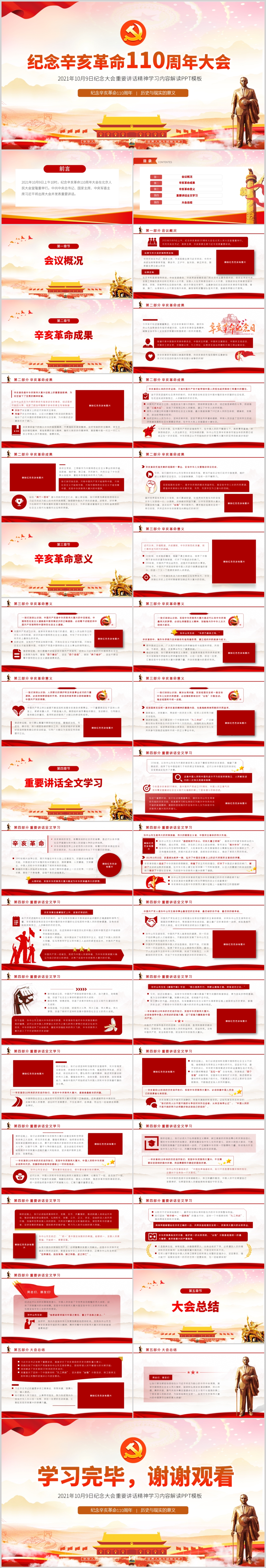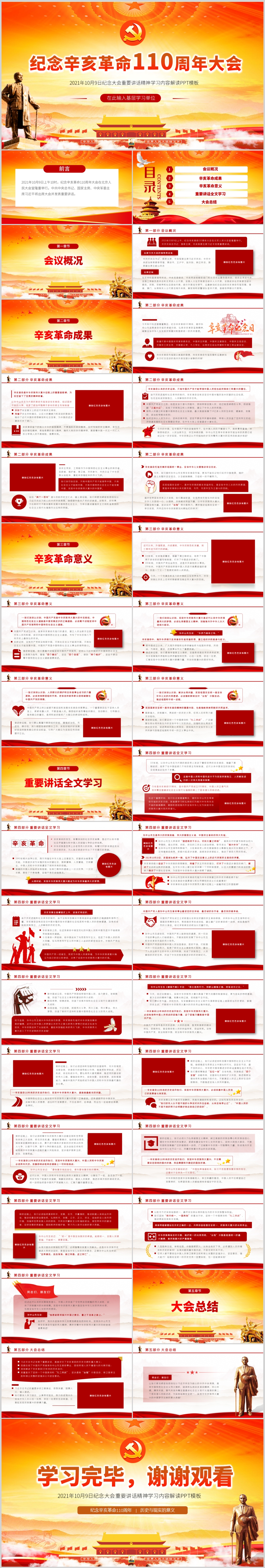 纪念辛亥革命110周年重要讲话精神解读PPT模板(内含WORD演讲稿)