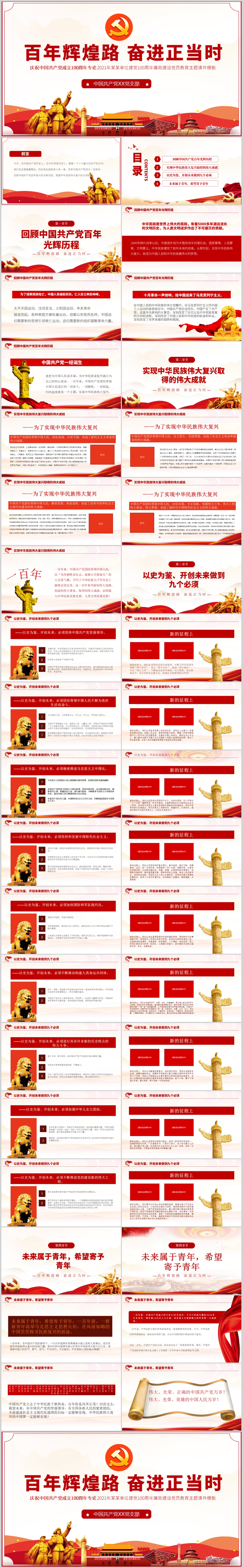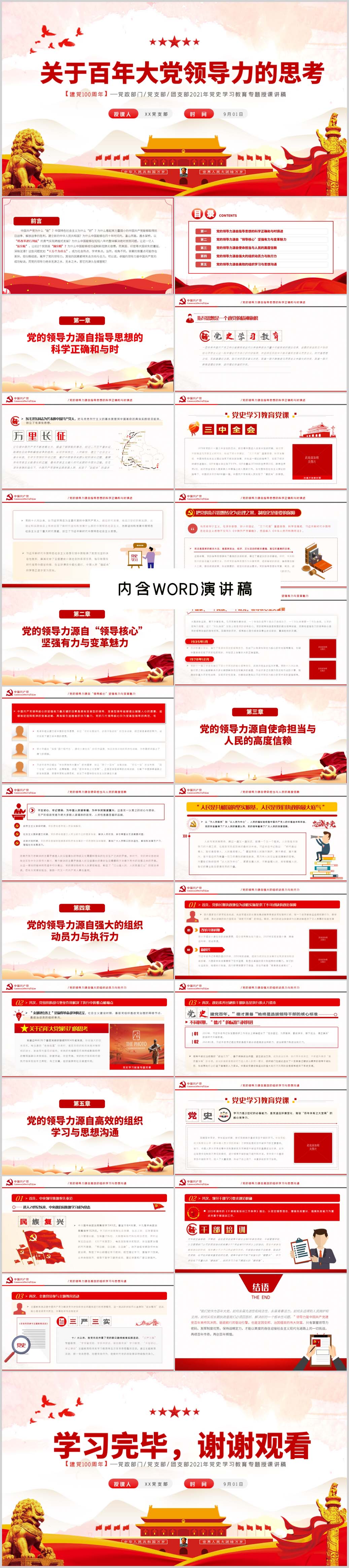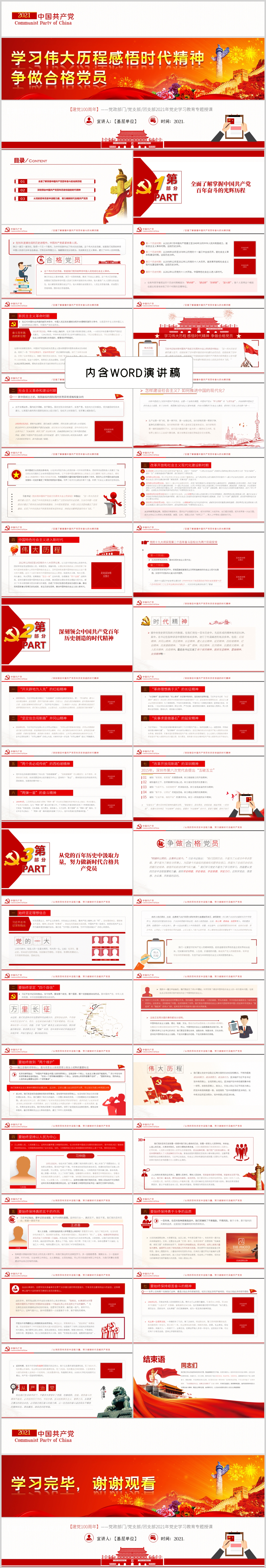 学习伟大历程感悟时代精神党史教育党课解读PPT模板(内含WORD演讲稿)