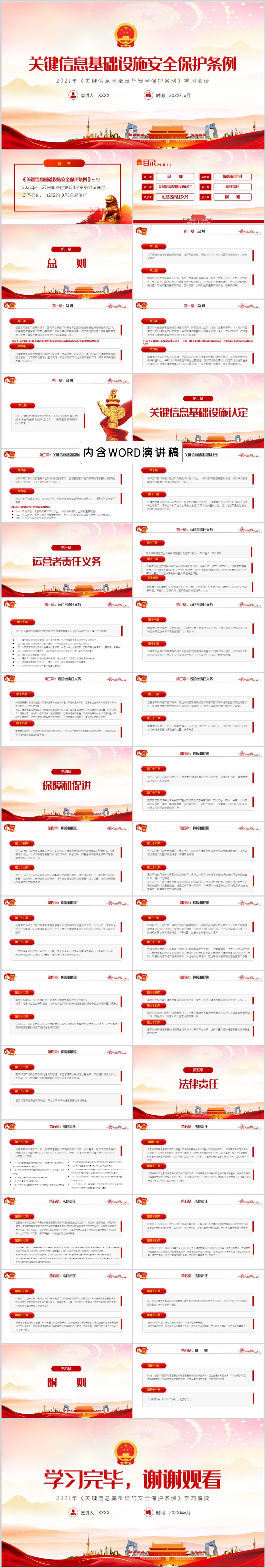 学习关键信息基础设施安全保护条例解读党课PPT模板(内含WORD演讲稿)