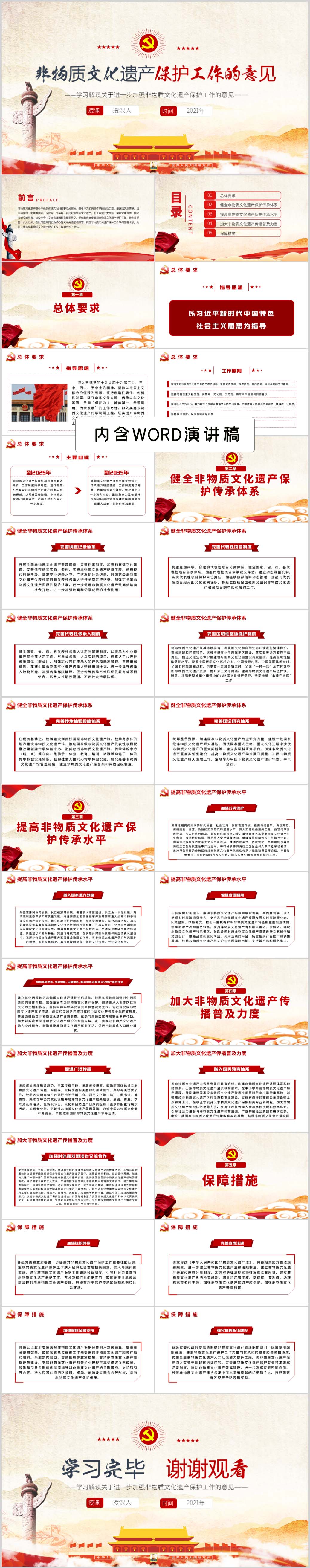 学习解读关于进一步加强非物质文化遗产保护工作的意见党课PPT模板(内含WO