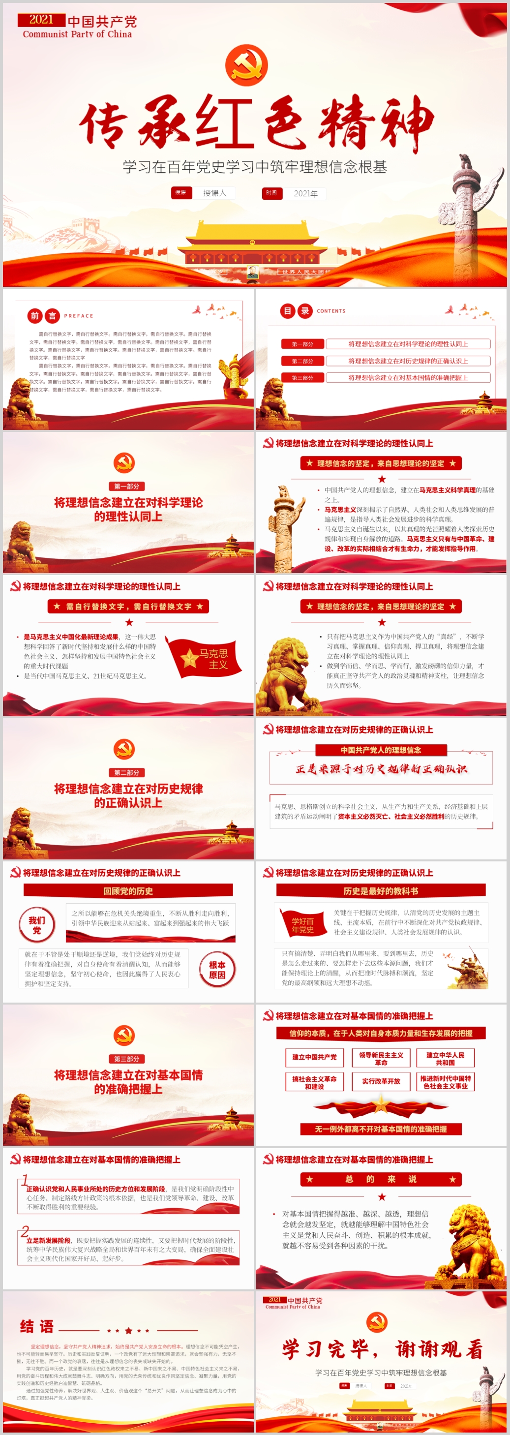 学习在百年党史学习中筑牢理想信念根基党课PPT模板(内含WORD演讲稿)