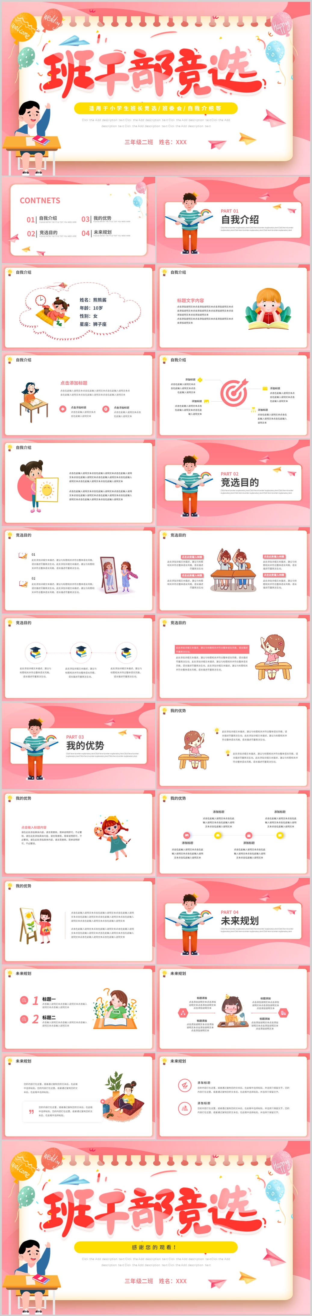 幼儿园中小学生大队委竞选自我介绍班干部竞选PPT模板