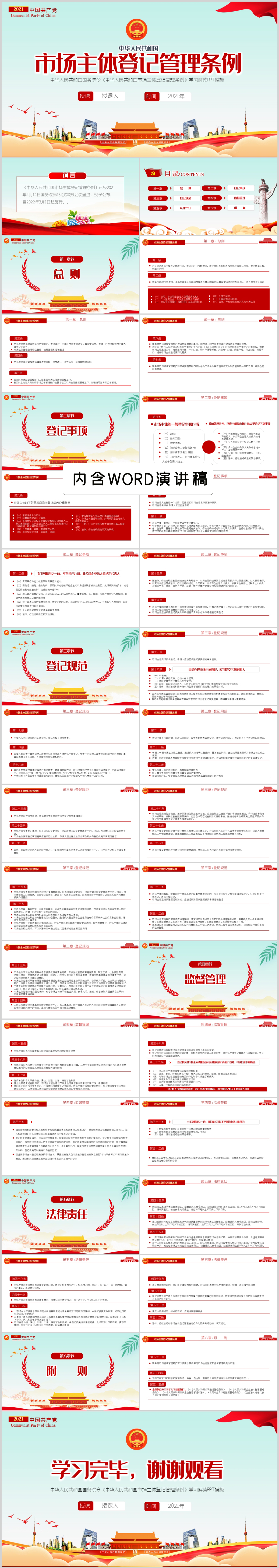 2021年市场主体登记管理条例学习解读PPT模板(内含WORD演讲稿)