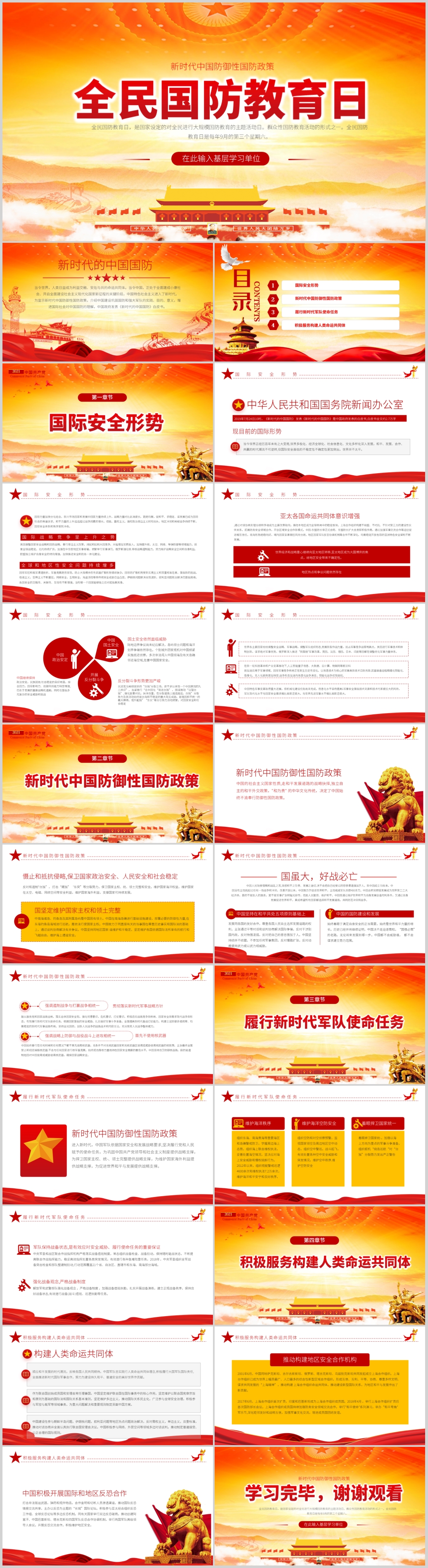 2023年全民国防教育日党课PPT模板