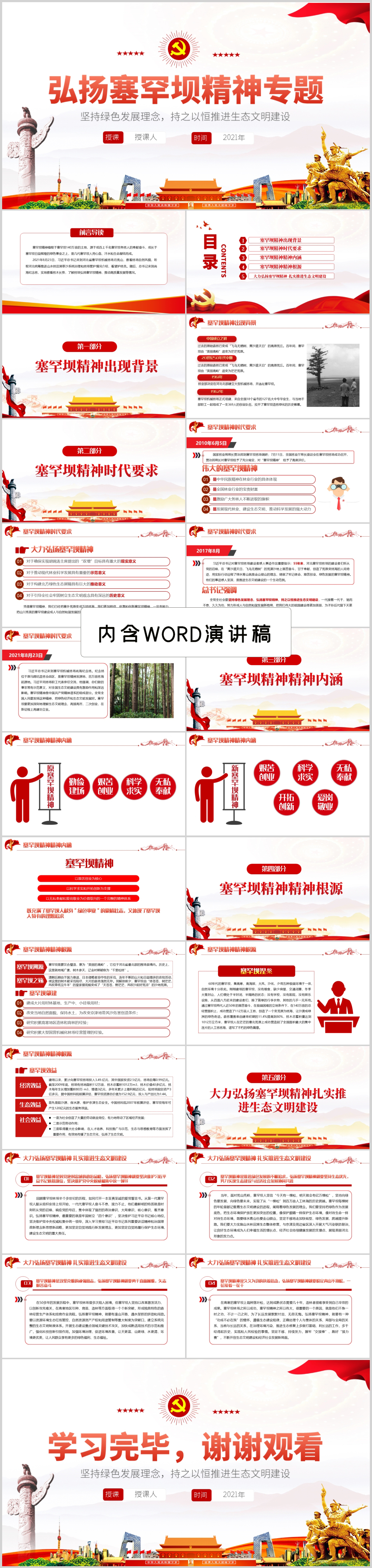 弘扬塞罕坝精神专题坚持绿色发展理念党课PPT模板(内含WORD演讲稿)