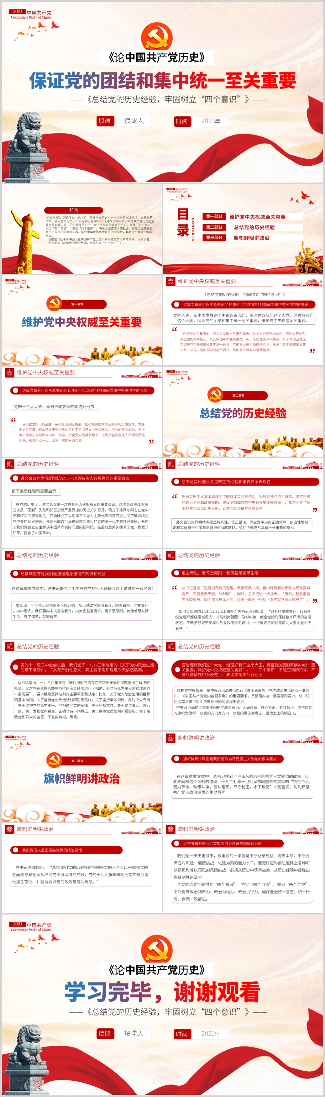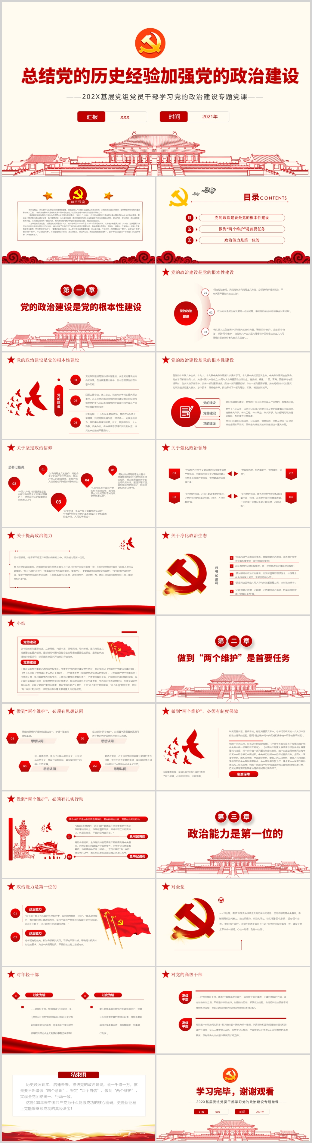 基层党组党员干部学习总结党的历史经验党的政治建设专题党课ppt模板