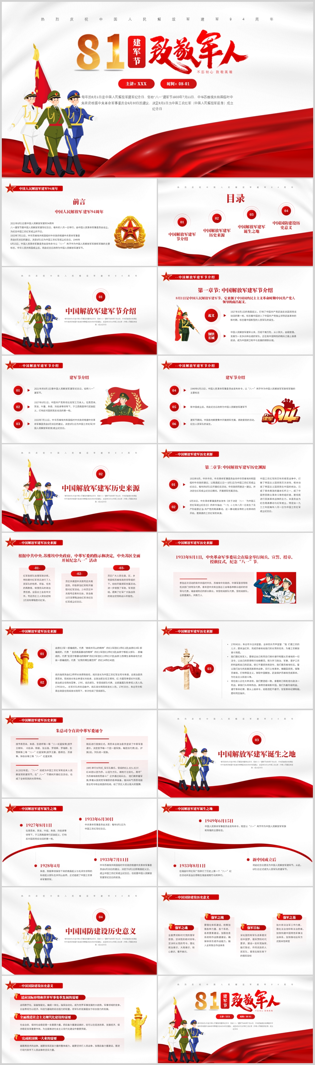 八一建军节部队军事解放军建军历史来源课件PPT模板