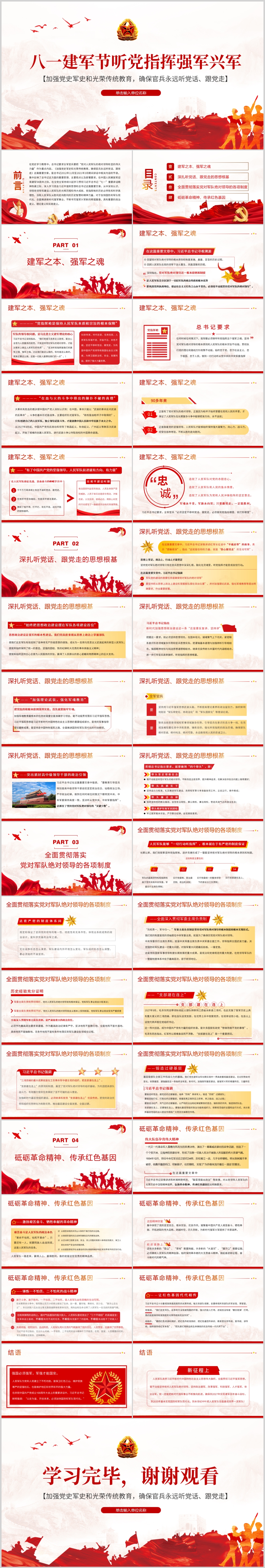八一建军节加强党史军史和光荣传统教育党课PPT模板